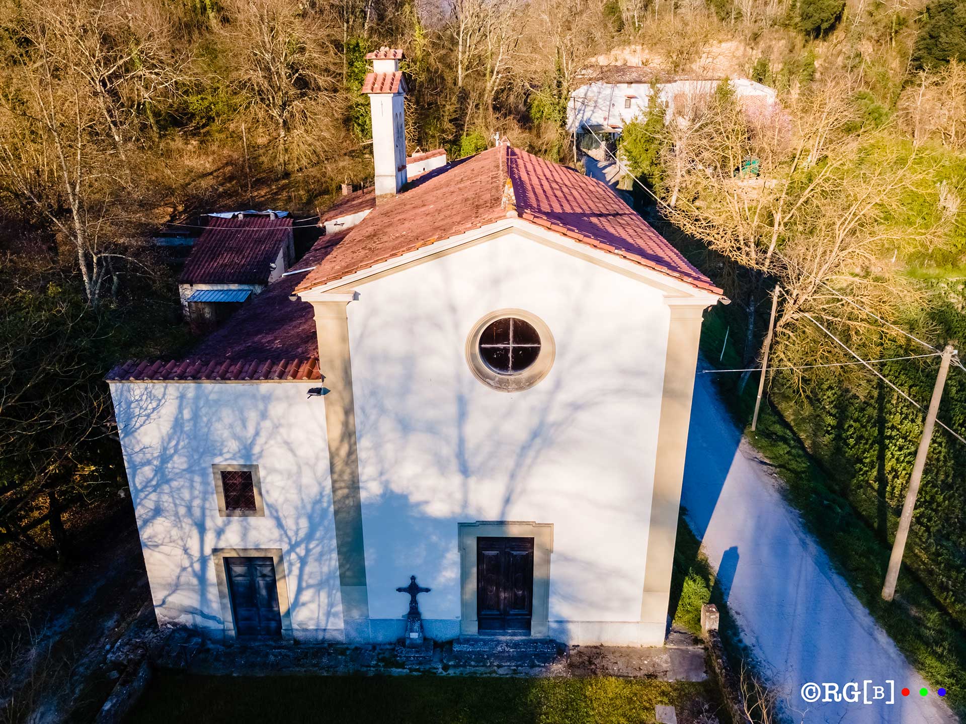 Stiamo pedalando su un percorso sterrato al termine del quale si incontra la Pieve di San Giovanni Maggiore, unica chiesa del territorio (e una delle poche non situata nel nord Italia) ad avere un campanile di forma ottagonale.